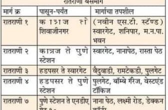 Maharashtra News पी एम पी ची पाच मार्गावरील रात राणी बस सेवा आजपासून पूर्ववत
