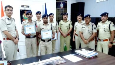 Chhattisgarh News थानों में वृक्षारोपण कर हरा भरा वातावरण निर्मित करने वाले 04 आरक्षकों को किया गया सम्मानित