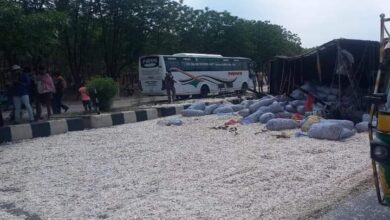 Jharkhand News सड़क पर पलटी लहसून लदी ट्रक, ग्रामीणों ने किया हाथ साफ