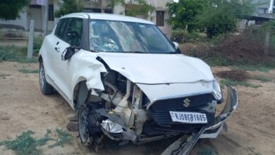 Rajasthan News कार का टायर फटा, बाइक सवारों के मारी टक्कर, तीन घायल।