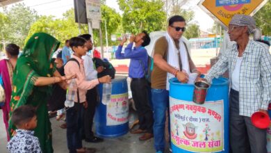 Rajasthan News रेल्वे स्टेशन बांदीकुई पर निःशुल्क जल सेवा का चल रही है। श्री राधे कृष्ण नवयुवक मंडल द्वारा।