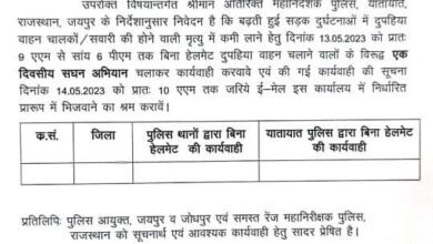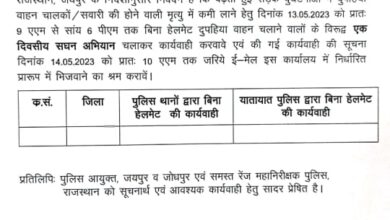 Rajasthan News सड़क दुर्घटनाओं में होने वाली मृत्यु में कमी लाने हेतु एक दिवसीय सघन अभियान
