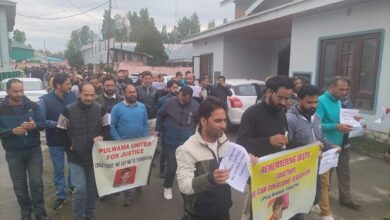 Jammu & Kashmir News नागरिक दीपू कुमार की हत्या की निंदा करने के लिए पुलवामा में कैंडल-लाइट मार्च आयोजित किया गया !