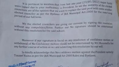 Jammu & Kashmir News बारामुला के मौजूदा अध्यक्ष के खिलाफ नगर पार्षदों ने अविश्वास प्रस्ताव पेश किया