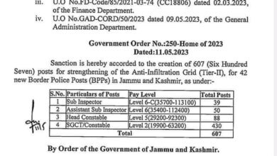 Jammu & Kashmir News जम्मू-कश्मीर सरकार ने घुसपैठ रोधी ग्रिड को मजबूत करने के लिए 607 पदों के सृजन का आदेश दिया