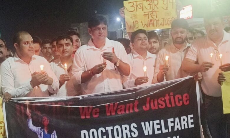 पुरकाजी में डॉक्टर्स वेलफेयर एसोशिएशन ने निकाला कैंडल मार्च