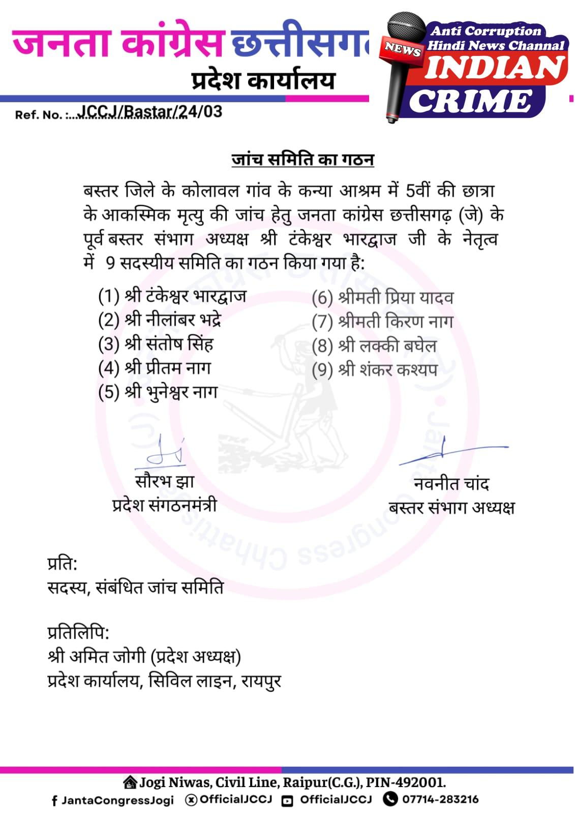 अतः पार्टी एवम मोर्चा की मांग है की गठित जांच कमेटी के प्रारंभिक जांच में, शिकायत का सही पाया जाना, गोदाम मैनेजर, क्वालिटी इंस्पेक्टर की भूमिका को संदिग्ध करता है! इसलिए जनता कांग्रेस छत्तीसगढ़ जे एवं बस्तर अधिकार मुक्ति मोर्चा बस्तर संभाग इस विषय मे मांग करता है कि प्रारंभिक जांच में पाए गए दोषियों को तत्काल निलंबित करते हुए, उनके विरुद्ध विभाग की जांच, एवं कानूनी प्रक्रिया हेतु एफ आई आर दर्ज करवाई जाए, और बस्तर की जनता को न्याय दिया जाए! पार्टी ने चेताते हुए कहा है कि पारदर्शिता से समय पर शीघ्रता से कत्ववः हो अन्यथा वास्तविक न्याय न मिलने पर,पार्टी प्रभावित हितग्राहियों के साथ आंदोलन करने हेतु मजबूर होगी!