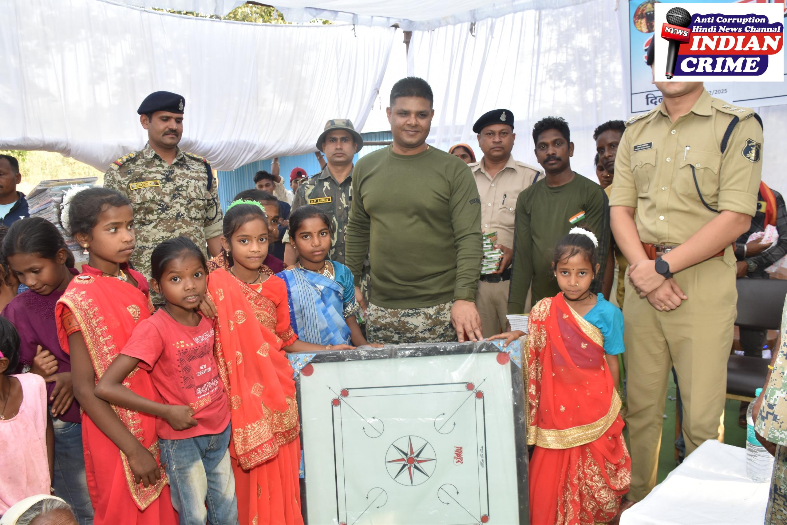 इस दौरान ग्रामीण को आवश्यक जरूरत की वस्तुयें जैसेंः- मच्छरदानी, कंबल, चप्पल, लूंगी, टी-शर्ट, युवाओं को वॉलीबाल किट, क्रिकेट किट, कैरमबोर्ड, फुटबॉल कीट, महिलाओं को साड़ी एवं बर्तन, विद्यार्थियों को पढ़ाई लिखाई संबंधी सामग्री एवं खेलकूद सम्बधित सामग्रीयों का वितरण किया गया।