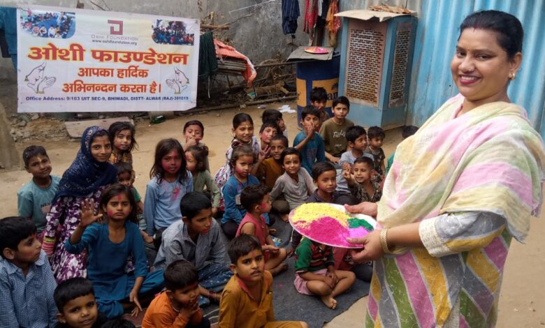ओशी फाउंडेशन द्वारा झुग्गी-झोपड़ी के बच्चों संग धूमधाम से मनाई गई होली
