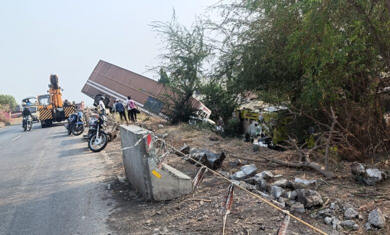 Maharashtra News : पुणे बेंगलोर रस्त्यावर वाठार ता. कराड गावानजीक कंटेनरचा अपघात