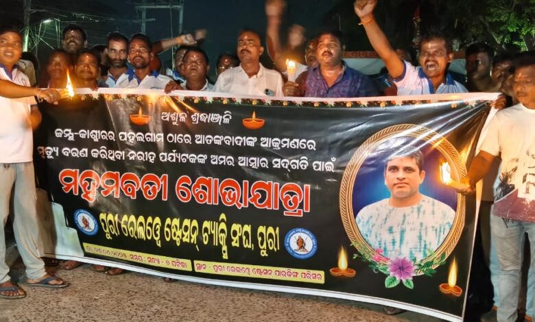 Orissa News : पुरी टैक्सी स्टैंड से मोमबत्ती जुलूस निकाला गया।