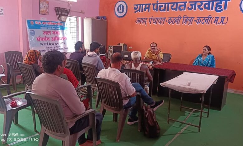 कटनी जिला के जरवाही में जल गंगा संवर्धन अभियान के अंतर्गत चौपाल और रैली के माध्यम से दिया गया जल संरक्षण का संदेश, ग्राम वासियों ने तालाब में श्रमदान से की सफाई
