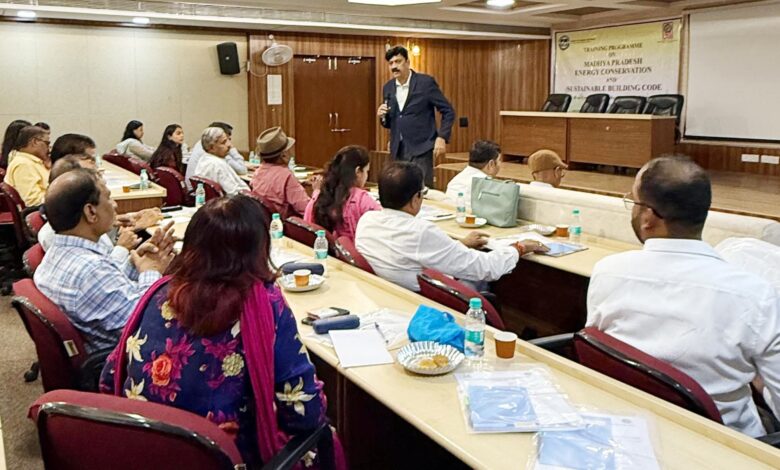 भवन क्षेत्र में ऊर्जा दक्षता को बढ़ावा देने और सतत विकास के लक्ष्यों की ओर एक सशक्त कदम के रूप में, मध्यप्रदेश लोक निर्माण विभाग के अधिकारियों के लिए 17 व 18 जुलाई 2025 को PWD सम्मेलन कक्ष, भोपाल में ऊर्जा संरक्षण एवं सतत भवन संहिता विषय पर दो दिवसीय प्रशिक्षण कार्यक्रम का आयोजन किया गया। कार्यक्रम में मुख्य अतिथि लोक निर्माण विभाग के प्रमुख अभियंता ने उद्घाटन सत्र में संहिता की आवश्यकता पर प्रकाश डालते हुए अधिकारियों को निर्देशित किया कि वे आगामी सभी भवन परियोजनाओं में ईसीएसबीसी के प्रावधानों को अपनाने का प्रयास करें। प्रशिक्षण में लोक निर्माण विभाग के मुख्य अभियंता (भवन), कार्यपालन यंत्री, सहायक यंत्री, उप यंत्री, वास्तुविद, परियोजना प्रतिवेदन अधिकारी एवं सामग्री परीक्षण अभियंता आदि ने भाग लिया। प्रशिक्षण सत्र का संचालन ऊर्जा दक्षता ब्यूरो से प्रमाणित मुख्य प्रशिक्षक जे. के. व्यास एवं राणा प्रताप पोद्दार द्वारा किया गया। प्रशिक्षण के पहले दिन मुख्य प्रशिक्षक जे. के. व्यास ने ईसीएसबीसी की आवश्यकता, इसके लाभ और प्रमुख प्रावधानों पर विस्तृत जानकारी दी एवं राणा प्रताप पोद्दार ने ईसीएसबीसी के विभिन्न घटकों जैसे – सतत स्थल चयन एवं योजना, भवन आवरण, कम्फर्ट प्रणाली एवं नियंत्रण, अपशिष्ट प्रबंधन, जल प्रबंधन, आंतरिक पर्यावरण गुणवत्ता, प्रकाश व्यवस्था एवं नियंत्रण, तथा ऊर्जा एवं नवीकरणीय ऊर्जा प्रणाली के बारे में विस्तार से बताया। प्रतिभागियों को अनुपालन तंत्र (कॉम्प्लायंस मैकेनिज़्म) के विषय में व्यावहारिक जानकारी दी। प्रशिक्षण के दूसरे दिन प्रशिक्षक राणा प्रताप पोद्दार ने ईको निवास संहिता एवं डिज़ाइन भवन सॉफ्टवेयर की सहायता से ऊर्जा एवं प्राकृतिक प्रकाश सिमुलेशन द्वारा कोड अनुपालन के तरीकों को समझाया एवं सिमुलेशन का व्यावहारिक प्रशिक्षण भी दिया। प्रशिक्षक श्री जे. के. व्यास ने eQuest सॉफ्टवेयर के माध्यम से भवन ऊर्जा सिमुलेशन करने का प्रशिक्षण प्रदान किया। यह प्रशिक्षण कार्यक्रम प्रदेश में ऊर्जा दक्ष भवन निर्माण को बढ़ावा देने की दिशा में एक महत्वपूर्ण प्रयास है। प्रशिक्षण के माध्यम से प्राप्त जान से अधिकारी आगामी परियोजनाओं में ऊर्जा संरक्षण को व्यवहार में ला सकेंगे।ऊर्जा संरक्षण एवं सतत भवन संहिता को ऊर्जा दक्षता ब्यूरो द्वारा वर्ष 2024 में प्रस्तुत किया गया। यह संहिता ऊर्जा संरक्षण अधिनियम, 2001 के अंतर्गत तैयार की गई है, जिसके अनुसार प्रत्येक राज्य इसे अपनी क्षेत्रीय आवश्यकताओं एवं जलवायु परिस्थितियों के अनुरूप संशोधित कर अधिसूचित कर सकता है। ऊर्जा दक्षता ब्यूरो (बीईई) द्वारा ईसीएसबीसी के दो कोड को प्रस्तुत किया गया। ईसीएसबीसी – वाणिज्यिक, जो व्यावसायिक भ