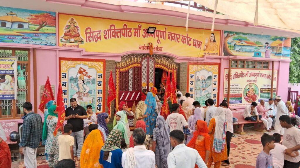 आज आयोजित भंडारे व जागरण को लेकर माता अन्नपूर्णा के चमत्कारिक स्थान नांगल सोडा धाम को बहुत ही भव्य तरीके से सजाया गया आज माता के दरबार में प्रसिद्ध भजन गायक त्रिलोक सैनी व मोहन सागर ने अपने भजनों के माध्यम से किया माता रानी का गुणगान इस अवसर पर यूपी पंजाब राजस्थान दिल्ली हरियाणा से हजारों की तादाद में भक्त पहुंचे माता अन्नपूर्णा के दरबार में अपनी हाजिरी लगाने को