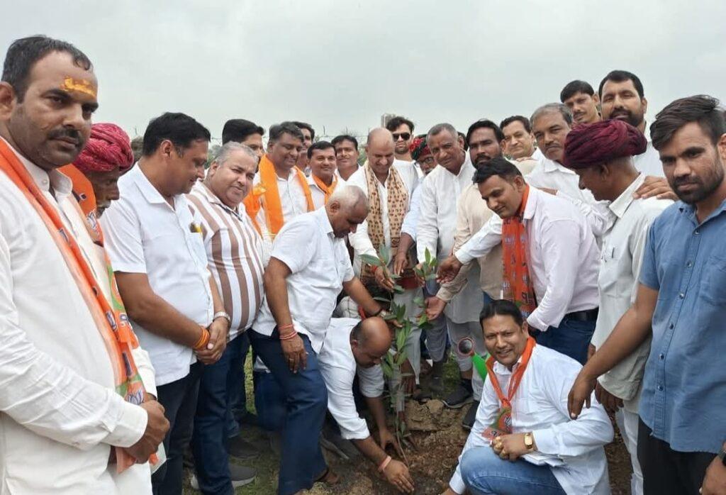 चित्तौड़गढ़ के सावा मंडल के ग्राम पंचायत सामरी पंचवटी में प्रधानमंत्री नरेंद्र मोदी जी के आह्वान पर भारतीय जनता पार्टी द्वारा चलाए जा रहे एक पेड़ मां के नाम वन एवं पर्यावरण वृक्षारोपण अभियान के अंतर्गत लगाया गया विधानसभा संयोजक राजू अग्रवाल शंभूपुरा ने कहा की विशिष्ट अतिथि भारतीय जनता पार्टी के पूर्व प्रदेश अध्यक्ष एवं चित्तौड़गढ़ के सांसद चंद्र प्रकाश जोशी भाजपा के जिलाध्यक्ष रतनलाल गाडरी पूर्व जिला अध्यक्ष मिट्ठू लाल जाट हर्षवर्धन सिंह शक्तावत रघु शर्मा कमलेश पुरोहित सांवलिया मंदिर अध्यक्ष हजारी दास वैष्णव एक पेड़ मां के नाम जिला संयोजक कर्नल सिंह काकरवा चित्तौड़ विधानसभा संयोजक राजू अग्रवाल सह संयोजक शंकरलाल गुर्जर ओबीसी मंडल अध्यक्ष उदयलाल गुर्जर ने बताया की सावा मंडल संयोजक दिलखुश जाट अध्यक्ष सत्यनारायण कुमावत बंशीलाल गुर्जर,पारसजी गुर्जर भेरूलाल कनीराम, मथुरालाल कन्हैयालाल धनराज गुर्जर वार्ड पंच श्री लाल गुर्जर,सह संयोजक श्याम सिंह, जितेंद्र वैष्णव किशन गुर्जर ऊंकार लाल गुर्जर रतनलाल कूका जीडांगी रमेश गुर्जर अर्जुन सिंह नारायण गुजर महामंत्री अनिल सुखवाल, वर्दीचंद्रडागी सत्तू जी आगाल रमेश डांगी किशन गुर्जर सैकड़ो कार्यकर्ताओं की उपस्थिति मे सांसद सी.पी जोशी ने सामरी पंचवटी में एक पेड़ मां के नाम वन एवं पर्यावरण अभियान के अंतर्गत 151पौधारोपण के साथ और सैकड़ो किस्म के पौधे लगाने की शपथ के साथ देश भर में पर्यावरण संरक्षण अभियान चलाया जा रहा है हरियालो राजस्थान अभियान के तहत कई महिला पुरुष, स्कूल के बच्चे बड़े उल्लास के साथ लोकसभा क्षेत्र में वृक्षारोपण अभियान तेजी के साथ बढ़ रहा हैं राजू अग्रवाल विधानसभा संयोजक चित्तौड़गढ़
