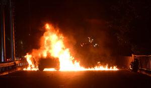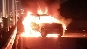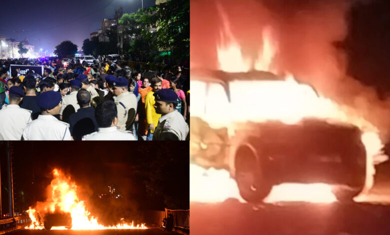 उग्र भीड़ ने एक स्कॉर्पियो और एक बाइक को आग के हवाले कर दिया।