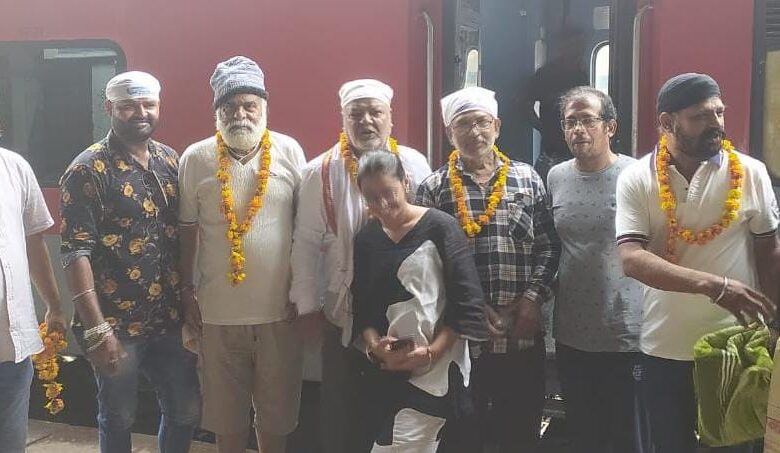 Uttar Pradesh News : आगरा कैंट स्टेशन पर 125 तीर्थ यात्रियों के जत्थे का पुष्प माला पहनाकर भव्य स्वागत