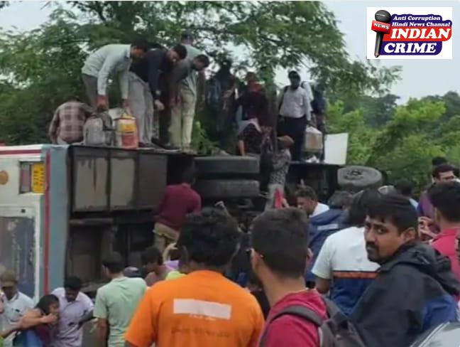 Gujarat News : हादसे में 5 से 6 यात्रियों को मामूली चोटें आईं। बस पलटते ही ड्राइवर मौके से फरार हो गया। सूत्रों के मुताबिक, ड्राइवर शराब के नशे में गाड़ी चला रहा था।