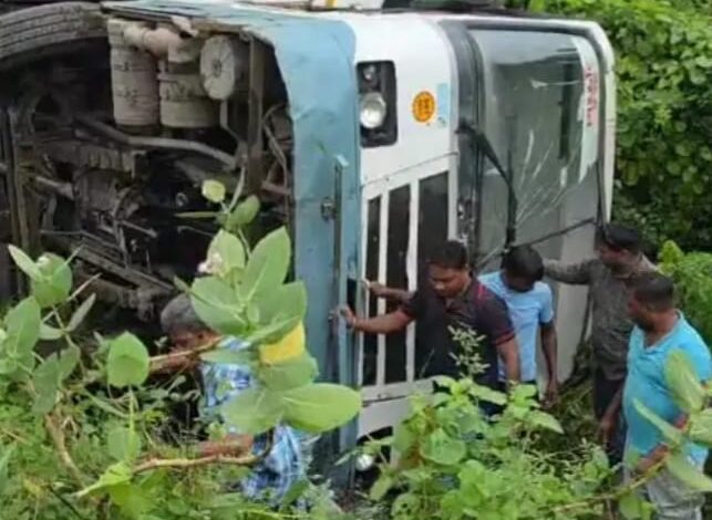 बारडोली तालुका के नांदीडा गाँव के बाहरी इलाके में एक सरकारी बस दुर्घटना का मामला सामने आया है। सड़क से गुजर रही सरकारी बस, सड़क पर मिट्टी धंसने के कारण पलट गई। हादसे से बस में सवार यात्रियों में अफरा-तफरी मच गई। घटना की सूचना मिलते ही बारडोली टाउन पुलिस स्टेशन के पीआई वी.ए. देसाई सहित पुलिस स्टाफ तुरंत मौके पर पहुँच गया। स्थानीय लोगों की मदद से सभी यात्रियों को बस से बाहर निकाला गया।हादसे में 5 से 6 यात्रियों को मामूली चोटें आईं। बस पलटते ही ड्राइवर मौके से फरार हो गया। सूत्रों के मुताबिक, ड्राइवर शराब के नशे में गाड़ी चला रहा था। फिलहाल, बारडोली टाउन पुलिस और सरकारी बस विभाग के अधिकारियों ने इस मामले की जाँच शुरू कर दी है। कोई बड़ी जनहानि न होने से सभी ने राहत की साँस ली।