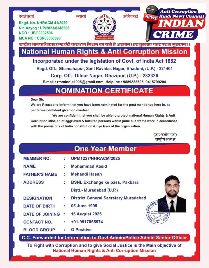 Uttar Pradesh News : उत्तर प्रदेश जनपद (मुरादाबाद) से तेज तर्रार लीडरशिप रखने वाले युवाओं के दिलों की धड़कन समाजसेवी