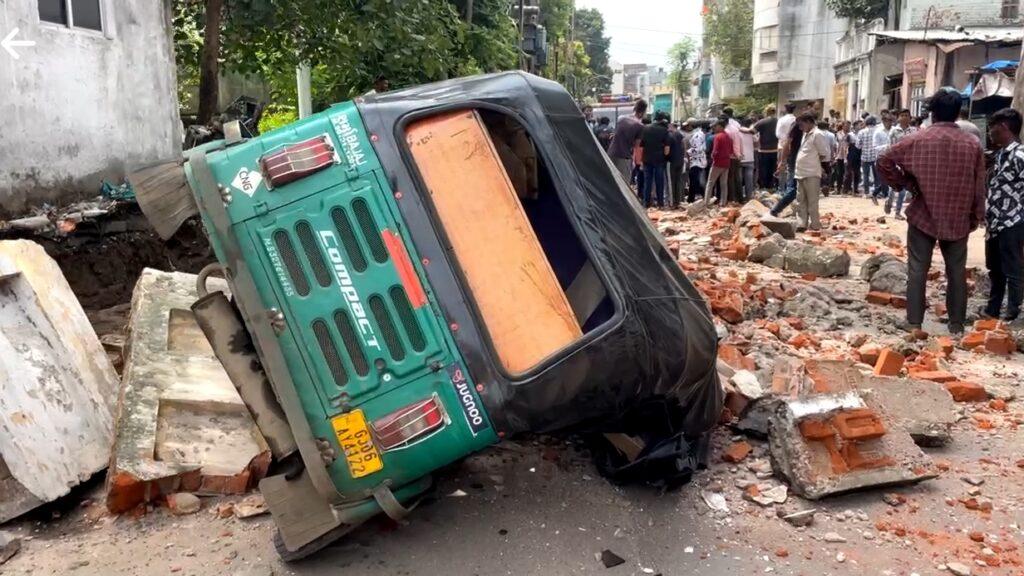 મળતી માહિતી મુજબ આજરોજ પાણી ગેટ પાસે આવેલ ભદ્ર કચેરી ની દીવાલ ધરાશાઈ થતા એક વ્યક્તિ નું મોત નીપજ્યું છે સાથે એક રીક્ષા પણ દબાઈ ગઈ છે