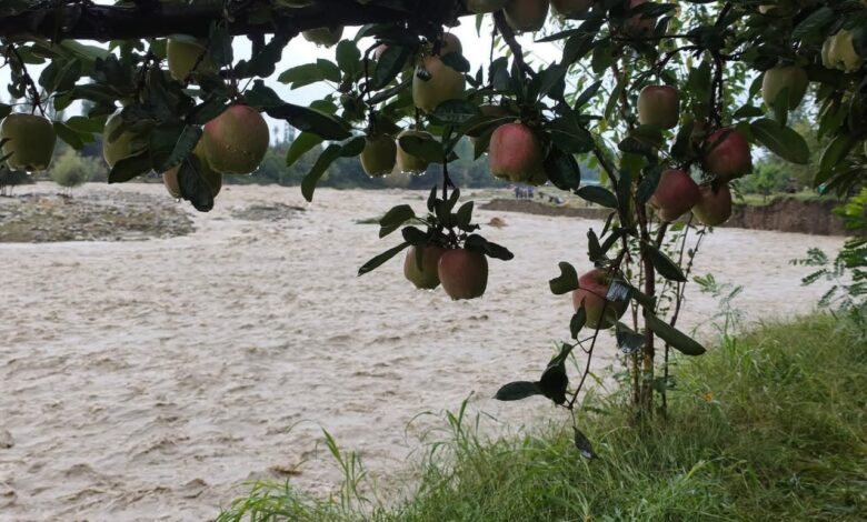 Jammu Kashmir News : पुलवामा के गूसू इलाके में अचानक आई बाढ़ से सेब के बागों को भारी नुकसान