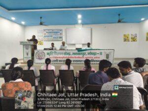आचार्य नरेंद्र देव कृषि एवं प्रौद्योगिक विश्वाविद्यालय कुमारगंज अयोध्या के अधीन संचलित कृषि विज्ञान केंद्र मनकापुर गोंडा में आज दिनांक 17 सितंबर 2025 को तेजभान उपाध्याय प्रवक्ता शस्य विज्ञान के नेतृत्व में मां गायत्री रामसुख पांडेय महाविद्यालय मसकनवां गोंडा के बीएससी कृषि के अंतिम वर्ष के रावे छात्रों का एक दिवसीय व्यवहारिक प्रशिक्षण आयोजित किया गया । डा. रामलखन सिंह प्रभारी अधिकारी कृषि विज्ञान केन्द्र मनकापुर गोंडा ने कृषि विज्ञान केंद्र के कार्यों तथा उद्देश्य से अवगत कराया । उन्होंने कृषि विज्ञान केंद्र के कार्यों जैसे प्रशिक्षण, प्रदर्शन, परीक्षण, किसान मेला, गोष्ठी आदि के बारे में जानकारी दी । उन्होंने केला, मक्का व गेंहूं की वैज्ञानिक खेती, जैव उर्वरकों का प्रयोग एवं महत्व, हरी खाद की खेती, ग्रीष्मकालीन गहरी जुताई आदि की जानकारी दी । उन्होंने बताया कि जैव उर्वरकों के प्रयोग से फसल की पैदावर में 15% वृद्धि होती है । डॉ. अजीत सिंह वत्स वरिष्ठ वैज्ञानिक फसल सुरक्षा ने मशरूम उत्पादन तकनीक, रबी फसलों में बीज शोधन एवं बीज उपचार, धान में कीट एवं रोग प्रबंधन, एकीकृत नाशीजीव प्रबंधन आदि की जानकारी दी । उन्होंने बताया कि प्रधानमंत्री सूक्ष्म खाद्य उद्यम योजना के अंतर्गत मशरूम का स्वरोजगार स्थापित करने के लिए बैंक द्वारा ऋण प्रदान किया जाता है । डा. हनुमान प्रसाद पांडेय मृदा वैज्ञानिक ने मृदा परीक्षण, मृदा उर्वरता आदि की जानकारी दी । उन्होंने बताया कि मृदा परीक्षण की संस्तुति के अनुसार संतुलित खाद एवं उर्वरकों के प्रयोग से फसल की पैदावार बढ़ती है । प्राकृतिक एवं जैविक खेती से अपनाकर गुणवत्ता युक्त उपज प्राप्त किया जा सकता है । डॉ. दिनेश कुमार पांडेय ने प्रक्षेत्र प्रभारी ने कम लागत में खेती की तकनीक की जानकारी दी । उन्होंने बताया की उन्नत कृषि मशीनरी हैप्पी सीडर, जीरो टिल सीड ड्रिल, मल्चर का प्रयोग कर धान के फसल अवशेषों का प्रबंधन किया जा सकता है । इस अवसर पर छात्रों को केंद्र पर संचालित मशरूम इकाई, सब्जी एवं बागवानी पौधशाला इकाई आदि तथा कृषक प्रक्षेत्र पर राजेश कुमार वर्मा द्वारा संचालित डेयरी तथा पिंक ताइवान अमरूद की बागवानी का भ्रमण कराया गया । अवधेश मौर्य, डॉ. रविशंकर मिश्रा आदि अध्यापकों सहित अभिषेक तिवारी, सुजीत कुमार मिश्रा, आशुतोष कमल, भानु प्रताप यादव, हिमांशु चतुर्वेदी, आशुतोष पांडे, दीक्षा वर्मा, तहसीम बानो,अंकिता सिंह, दिव्यांशी शुक्ला आदि छात्र छात्राओं ने प्रतिभाग किया ।