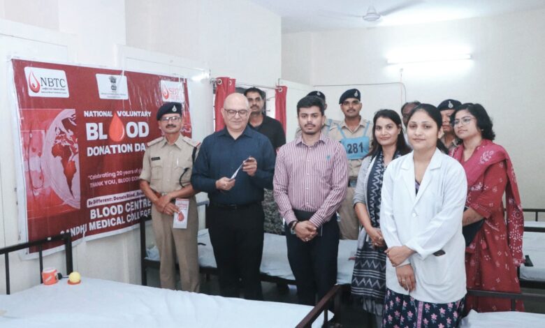 प्रधानमंत्री नरेन्द्र मोदी के जन्मदिवस के अवसर पर सेवा पखवाड़ा के अंतर्गत पुलिस प्रशिक्षण शाला, भौंरी (भोपाल) में रक्तदान शिविर एवं महिला स्वास्थ्य जागरूकता कार्यशाला का आयोजन किया गया। यह कार्यक्रम पुलिस मुख्यालय भोपाल के निर्देशन और अतिरिक्त पुलिस महानिदेशक राजाबाबू सिंह के मार्गदर्शन में संपन्न हुआ।शिविर में हमीदिया हॉस्पिटल के सहयोग से 40 नव आरक्षकों ने स्वेच्छा से रक्तदान किया, वहीं 326 महिला आरक्षकों ने स्वास्थ्य परामर्श प्राप्त किया और स्वास्थ्य जागरूकता कार्यशाला में भाग लिया। इस अवसर पर मुख्य अतिथि के रूप में पुलिस उप महानिरीक्षक (कम्यूनिटी पुलिसिंग एवं पीएसओ टू डीजीपी) डॉ. विनीत कपूर उपस्थित रहे। उन्होंने अपने उद्बोधन में कहा कि “रक्तदान मानवता की सेवा का सर्वोच्च आदर्श है। यह न केवल जरूरतमंद को जीवनदान देता है, बल्कि रक्तदाता के स्वास्थ्य के लिए भी लाभकारी होता है।