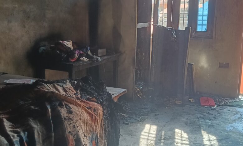 फोटो -फटी हुई बैटरी व घर में लगी आग।