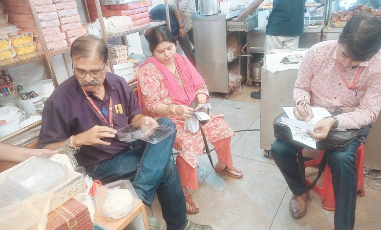 कलेक्टर भोपाल कौशलेन्द्र विक्रम सिंह के निर्देशानुसार सोमवार को आगामी त्योहारों में आमजन को शुद्ध एंव गुणवत्तापूर्ण खाद्य पदार्थों की सुगम उपलब्धता के लिए खाद्य सुरक्षा प्रशासन द्वारा चलित खाद्य परीक्षण प्रयोगशाला के माध्यम से शहर के विभिन्न स्थलों का निरीक्षण किए गए। निरीक्षण के दौरान खाद्य कारोबारकर्ताओं को दुकान में स्वच्छता रखने एवं खाद्य पदार्थों को ढक कर रखने के लिए निर्देशित किया गया एवं खाद्य कारोबारकर्ताओं को समझाइश दी गई कि किसी भी दशा में दूषित एवं खराब खाद्य सामग्री का विक्रय न करने के निर्देश दिये। निरीक्षण किये गये मुख्य प्रतिष्ठानों में रायसेन रोड पिपलानी में ओमजय सेव नमकीन से बेसन एवं तेल, गौरव डेरी से दूध, दही, घी, मावा, क्वालिटी स्वीट्स हाउस से मिल्क केक, बादामवर्की, मगज लड्डू, मावा वर्फी के, गोपाल दूध डेरी से दूध, दही, मावा, पनीर, घी के नमूनों की चलित खाद्य परीक्षण प्रयोगशाला के माध्यम से मौके पर ही जाँच की गई। सभी मानक पाए गए इसके अतिरिक्त चलित प्रयोगशाला के माध्य खादय सुरक्षा अधिकारियों की टीम द्वारा इंद्रपुरी स्थित बजरंग स्वीट्स से नमकीन मठरी, बेसन लड्डू, मिल्क पेड़ा, मिल्क केक, एम.पी.नगर स्थित मनोहर फूड्स से मिल्क केक, मिलन स्वीट्स से मलाई बर्फी, बेसन लड्डू, मावा पेड़ा एंव नमकीन सेव एंव अशोका गार्डन स्थित पंजाब डेयरी से मावा, राजस्थान मिष्ठान भंडार अरविंद विहार बागमुगलिया से समोसा और मावा पेड़ा के नमूने, परमार डेयरी 11 नंबर मार्केट से पनीर का नमूना एवं अमीरा नमकीन हाउस अरेरा कालोनी से नमकीन के सैंपल संग्रहित किये गये। निरीक्षण दल में खाद्य सुरक्षा अधिकारी उपस्थित रहे।