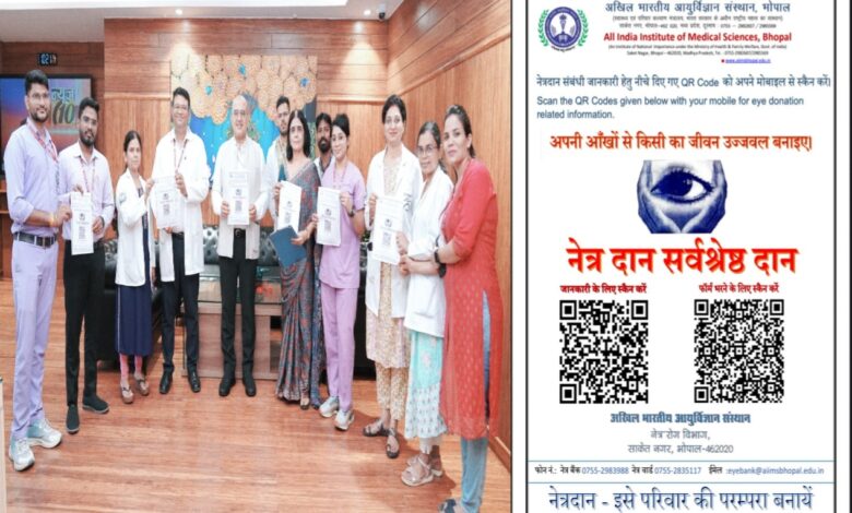 एम्स भोपाल के ऑप्थल्मोलॉजी विभाग की नेत्र बैंक ने नेत्रदान जागरूकता बढ़ाने के लिए क्यूआर कोड आधारित अभियान की शुरुआत की। इस अभियान का शुभारंभ एम्स भोपाल के कार्यपालक निदेशक एवं सीईओ प्रो. डॉ. माधवानन्द कर द्वारा किया गया। क्यूआर कोड स्कैन कर कोई भी व्यक्ति अपने मोबाइल से नेत्रदान की जानकारी प्राप्त कर सकता है और घर बैठे संकल्प फॉर्म भर सकता है। ऑप्थल्मोलॉजी विभाग की विभागाध्यक्ष, प्रो. (डॉ.) भावना शर्मा ने बताया कि कॉर्नियल ट्रांसप्लांटेशन के माध्यम से कॉर्नियल अंधत्व का निवारण संभव है। इस पहल का उद्देश्य समाज में नेत्रदान के प्रति जागरूकता और सहभागिता बढ़ाना है।