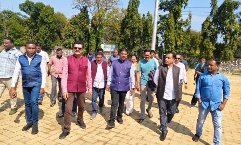 आगामी 15 नवंबर को सिटी ग्राउंड में आयोजित होने वाले जनजाति गौरव दिवस कार्यक्रम स्थल का निरीक्षण करने पहुंचे मंत्री केदार कश्यप।