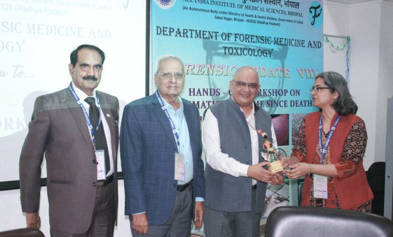 एम्स भोपाल ने आठवां ‘फॉरेंसिक अपडेट’ आयोजित किया, जिसका मुख्य फोकस मृत्यु के बाद बीते समय (टाइम-सिंस-डेथ) की सटीक गणना की आधुनिक वैज्ञानिक विधियों पर रहा।दो दिवसीय राष्ट्रीय कार्यशाला में देशभर से 70 से अधिक विशेषज्ञों, फैकल्टी सदस्यों, रेज़िडेंट डॉक्टरों, पीएचडी स्कॉलर्स और फॉरेंसिक प्रोफेशनल्स ने भाग लिया।यह कार्यक्रम एम्स भोपाल के कार्यपालक निदेशक प्रो. माधवानंद कर के मार्गदर्शन और प्रोत्साहन से सफलतापूर्वक आयोजित हुआ। कार्यशाला का उद्घाटन एम्स भोपाल के डीन (एकेडमिक्स) डॉ. रजनीश जोशी द्वारा किया गया। कार्यशाला में एम्स भोपाल के विशेषज्ञों ने महत्वपूर्ण वैज्ञानिक सत्र लिए।प्रतिभागियों को बायोकेमिकल मार्कर्स, रेडियोलॉजी, फॉरेंसिक एंटोमोलॉजी, माइक्रोबायोलॉजी, जीनोमिक्स और प्रोटीओमिक्स जैसी आधुनिक तकनीकों पर व्यावहारिक प्रशिक्षण दिया गया। यह आयोजन देश में फॉरेंसिक साइंस शिक्षा को और मजबूत बनाने की दिशा में एम्स भोपाल की प्रतिबद्धता को दर्शाता है।