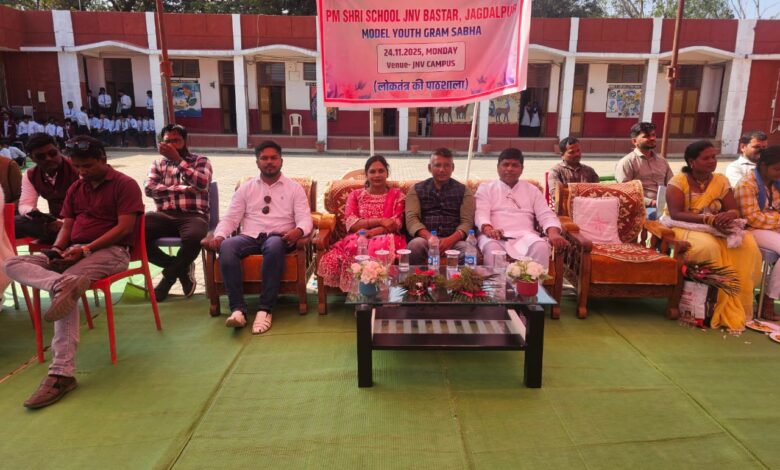 दिनांक 24.11.2025 जगदलपुर नवोदय विद्यालय में लोकतंत्र की पाठशाला नामक ग्राम सभा का आयोजन भारत सरकार के निर्देशों पर आयोजित किया गया जिसमें स्कूल के विभिन्न कक्षाओं के विद्यार्थियों के द्वारा उक्त कार्यक्रम का मंचन किया गया।
