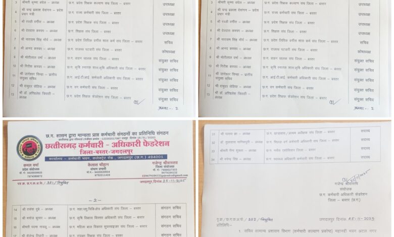 फेडरेशन के संयोजक गजेंद्र श्रीवास्तव ने जिला कार्यकारिणी का किया गठन, बस्तर जिला में कर्मचारी संगठन हुआ मजबूत