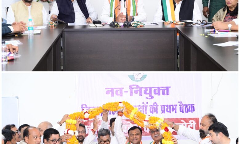 जिला कांग्रेस कमेटी के नव नियुक्त अध्यक्षों की बैठक