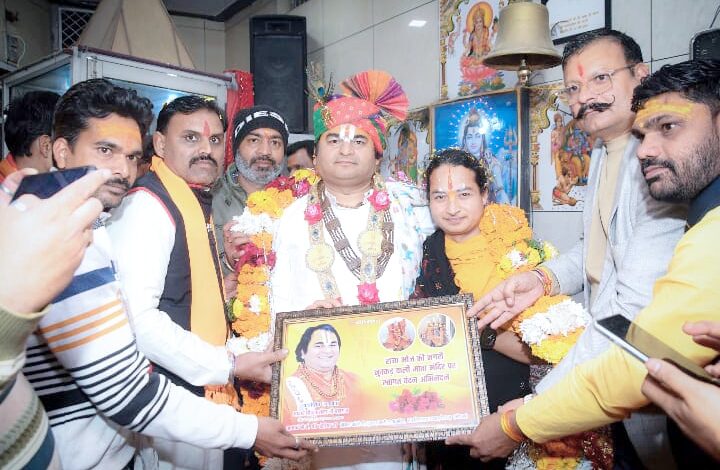 संत नगर – सकल हिंदू समाज द्वारा नुक्कड़ वाली माता मंदिर प्रांगण में सामूहिक हनुमान चालीसा का पाठ राम भक्त हनुमान की आरती में अंतर्राष्ट्रीय कथा व्यास चित्रकूट धाम से एवं कृपा शंकर महाराज अयोध्या धाम से पधारे। अंतरराष्ट्रीय कथा व्यास आचार्य श्रीवत्स महाराज का आगमन नुक्कड़ वाली माता मंदिर पर आगमन हुआ सकल हिंदू समाज द्वारा स्वागत किया आचार्य द्वारा विजय मंत्र श्री राम जय राम जय जय राम उपरांत सामूहिक हनुमान चालीसा का पाठ किया आचार्य श्रीवात्स जी महाराज एवं कृपा शंकर महाराज ने हनुमान चालीसा के बारे में बताया कलयुग में सबसे प्रभावशाली हनुमान चालीसा का पाठ जो भी श्रद्धा सुमन से करता है निश्चित रूप से सफलता की प्राप्ति होती है समस्त मातृशक्ति एवं शक्ल हिंदू समाज द्वारा महाराज का स्वागत किया आरती के बाद प्रसाद वितरण किया। आरती में सैकड़ो श्रद्धालु लोग सम्मिलित हुए।