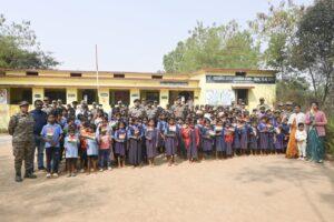 महानिदेशालय, के.रि.पु.बल के निर्देशानुसार गणतन्त्र दिवस 2026 के उपलक्ष्य पर दिनांक 19/01/2026 से 26/01/2026 तक वंदे मातरम् राष्ट्रीय गीत को अमल में लाने हेतु जागरूकता अभियान के माध्यम से जवानों, आम नागरिकों एवं बच्चों में राष्ट्र प्रेम की भावना को प्रेरित किया गया। इसी परिपेक्ष्य में 241 बस्तरिया बटालियन केन्द्रीय रिजर्व पुलिस बल के अधिकारियों एवं जवानों द्वारा आज दिनांक 23/01/2026 को वंदे मातरम् गीत को जवानों, अधिकारियों एवं स्कूली बच्चों के साथ गाकर मनाया गया। इस अवसर पर वंदे मातरम् को आत्म निर्भर और विकसित भारत के संकल्प का मूलमंत्र एवं इस उत्सव का उद्देश्य स्वतन्त्रता आन्दोलन के प्रमुख प्रतीक के माध्यम से राष्ट्रीय गौरव एवं एकता को सुदृढ़ करना है।