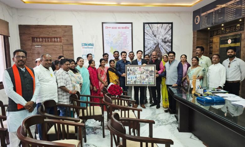 महापौर संजय पांडे के नेतृत्व में भाजपा पार्षदों ने कलेक्टर आकाश छिकारा से की सौजन्य भेंट