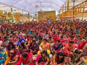 मंदिर में चल रहे 7 दिवसीय आयोजन के पांचवें दिन हुई कुमकुम पूजा के लिये टेंपल कमेटी की ओर से पूजन सामग्री दी गई थी। महिलाओं ने अपने सुहाग एवं परिवार की दीर्घायु के लिए कुमकुम पूजा की। कुमकुम पूजा में मंदिर परिसर मेंं 1 हजार से महिलाओं ने भाग लिया।