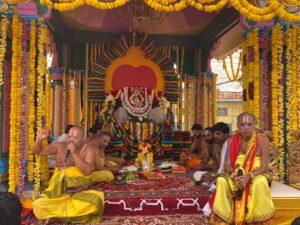 पूजा विधान आंध्रप्रदेश से पंडित रामाचार्युलु एवं साथी पंडितों ने संपन्न करवाया। बता दें कि गुरुवार रात में श्रीनिवास कल्याणम महोत्सव संपन्न हुआ था। रात डेढ बजे तक जारी पूजा में भी बड़ी संख्या में श्रद्धालु उपस्थित रहे। गुरुवार को ही संपन्न हुए महा अभिषेक के बाद देव प्रतिमाओं को रत्न कवच पहनाये गये।