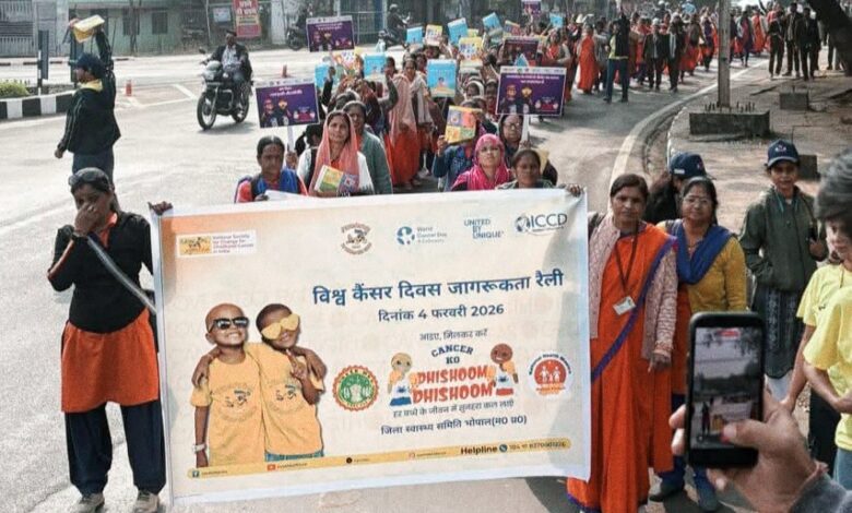 विश्व कैंसर दिवस पर 4 फरवरी को जयप्रकाश जिला चिकित्सालय से निकाली गई जागरूकता रैली को मुख्य चिकित्सा एवं स्वास्थ्य अधिकारी भोपाल डॉ मनीष शर्मा ने हरी झंडी देकर रवाना किया। रैली के माध्यम से कैंसर के विभिन्न प्रकारों, लक्षणों की पहचान और उपचार के संदेश दिए गए। कैंसर दिवस पर स्वास्थ्य संस्थाओं में आयोजित परामर्श एवं जागरूकता शिविरों में मुख, स्तन कैंसर, सर्वाइकल कैंसर तथा अन्य कैंसर के लक्षणों की जानकारी दी गई। आयुष्मान आरोग्य मंदिरों में तंबाकू के दुष्प्रभावों एवं कैंसर जागरूकता हेतु प्रश्नोत्तरी, रैली निबंध एवं चित्रकला प्रतियोगिता आयोजित की गई । जयप्रकाश चिकित्सालय में आयोजित जागरूकता कार्यक्रम में कैन किड्स किड्स कैन संस्था के प्रतिनिधियों द्वारा चाइल्डहुड कैंसर की जानकारी दी गई। संस्था द्वारा जन्म से 19 साल तक के बच्चों को उपचार के दौरान निःशुल्क आवास, पोषण सहायता, शिक्षा, मनोवैज्ञानिक परामर्श, चिकित्सकीय जांच–इलाज में सहयोग तथा सरकारी योजनाओं के माध्यम से मिलने वाले आर्थिक लाभ दिलाने में पूर्ण सहायता प्रदान की जाती है।संस्था के स्टेट प्रोजेक्ट मैनेजर सौरभ सिंह चौहान ने बताया कि बाल कैंसर के लक्षणों को सही समय पर पहचान और उपचार से 70 से 90 प्रतिशत बच्चों को पूर्ण रूप से स्वस्थ किया जा सकता है। मुख्य चिकित्सा एवं स्वास्थ्य अधिकारी भोपाल डॉ मनीष शर्मा ने बताया कि आयुष्मान आरोग्य मंदिर स्तर तक कैंसर के प्रारंभिक लक्षणों की पहचान की जा रही है। जिला चिकित्सालय में सी टी स्कैन और एम आर आई जैसी उच्चस्तरीय जांच सुविधाएं उपलब्ध हैं। मरीज में कैंसर के संभावित लक्षण देखने पर असंचारी रोग नियंत्रण कार्यक्रम के अंतर्गत निशुल्क उपचार दिया जाता है ।