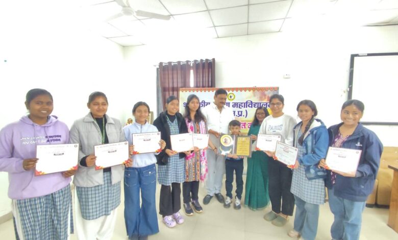 राष्ट्रीय एवं राज्य स्तर पर उपलब्धि प्राप्त करने पर महाविद्यालय में छात्राओं का किया गया सम्मान