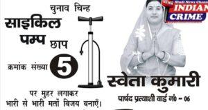 उन्होंने मतदाताओं से अपील करते हुए कहा कि आगामी चुनाव में क्रमांक संख्या-5 पर साइकिल अथवा पम्प छाप पर मुहर लगाकर उन्हें भारी मतों से विजयी बनाएं, ताकि वार्ड-06 को विकास की नई दिशा दी जा सके।