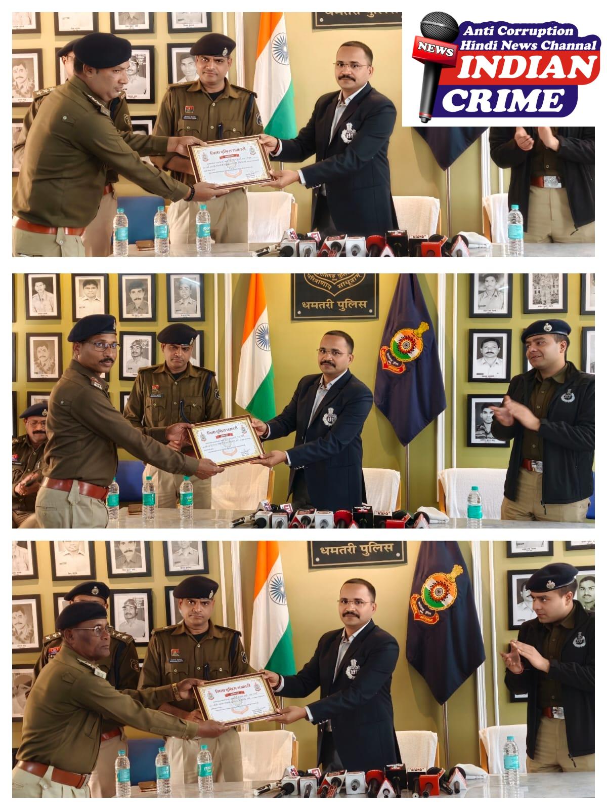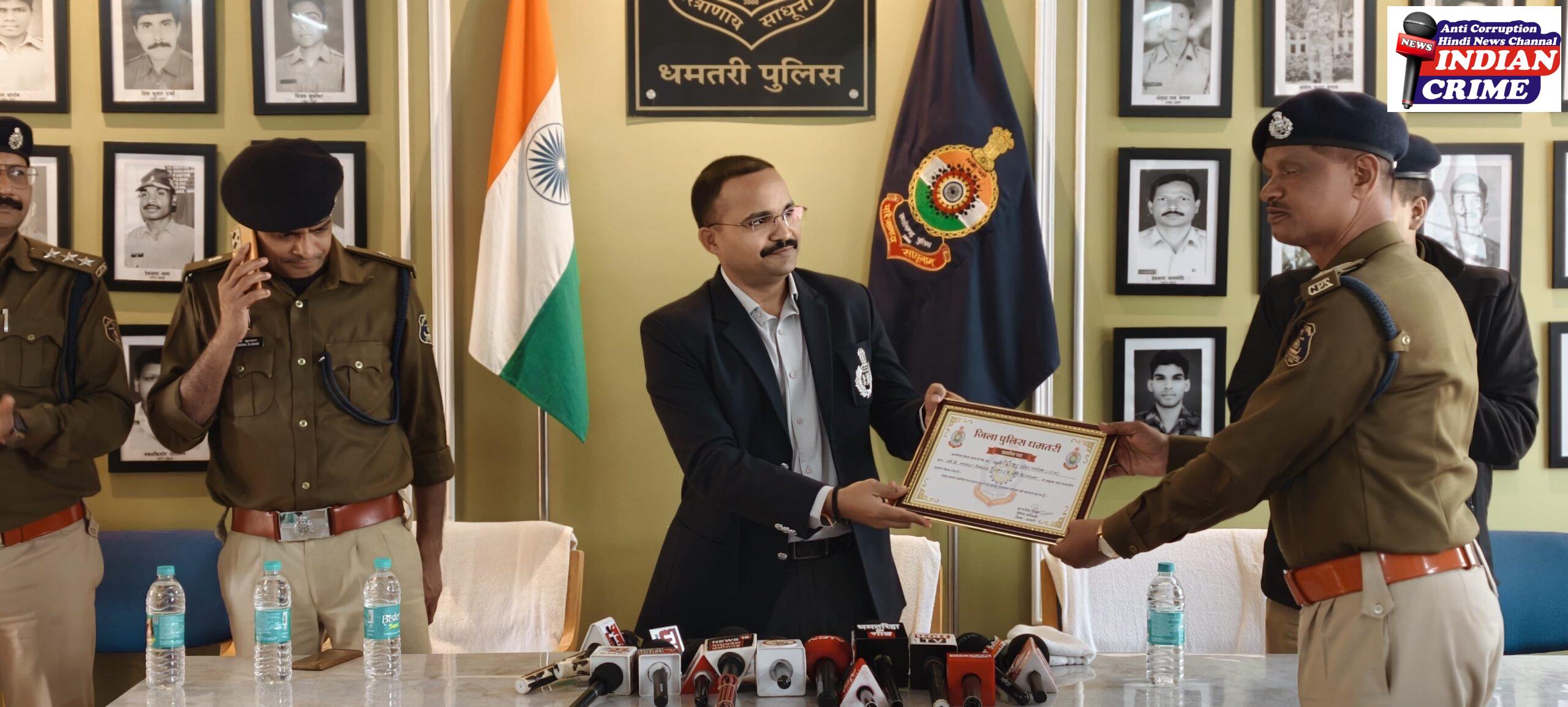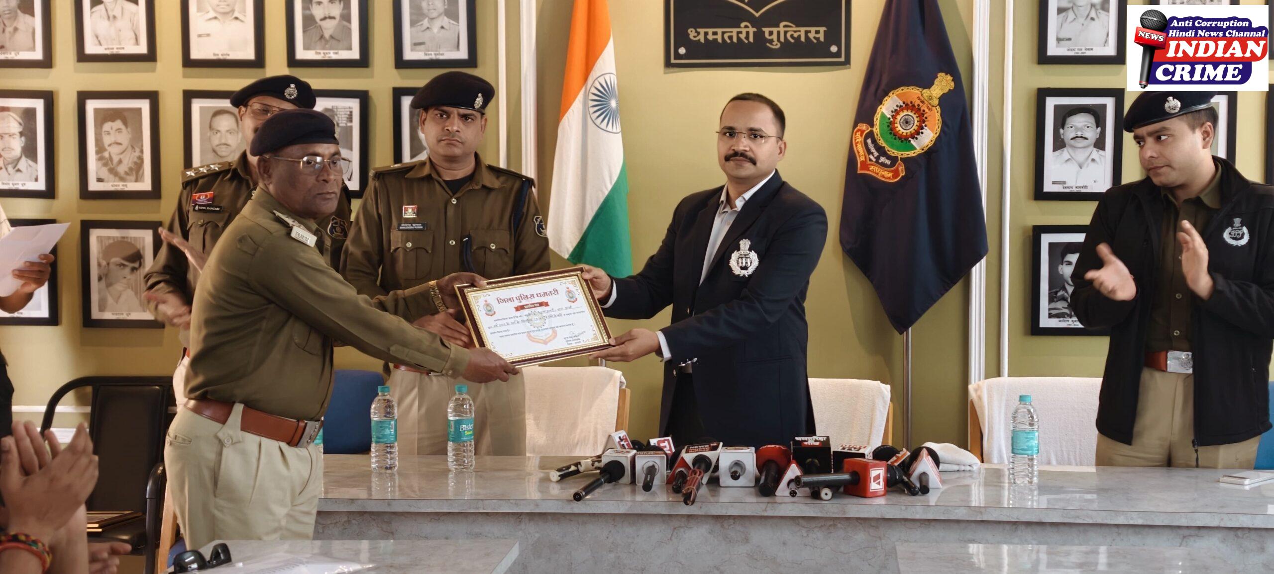 अपराध नियंत्रण में धमतरी पुलिस की बड़ी सफलता – एसपी धमतरी ने अर्जुनी, कुरूद, सिहावा व दुगली थाना प्रभारियों तथा सीएसपी धमतरी एवं एसडीओपी कुरूद को किया सम्मानित