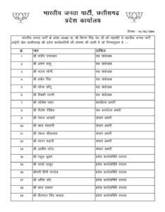 भारतीय जनता पार्टी आईटी सेल छत्तीसगढ़ संगठन को और अधिक सशक्त एवं प्रभावी बनाने की दिशा में प्रदेश नेतृत्व द्वारा एक महत्वपूर्ण निर्णय लिया गया है। प्रदेश अध्यक्ष किरण सिंह देव की सहमति से भारतीय जनता पार्टी आईटी सेल छत्तीसगढ़ प्रदेश कार्यकारिणी की घोषणा की गई। जिसमें पार्टी के सक्रिय, अनुभवी एवं संगठन के प्रति समर्पित कार्यकर्ता पंकज आचार्य को भारतीय जनता पार्टी आईटी सेल संभाग प्रभारी नियुक्त किये गए है।