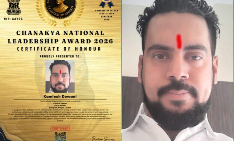 समाज सेवा के क्षेत्र में अपने योगदान के लिए देवानी को मिला चाणक्य नेशनल लीडरशिप अवार्ड