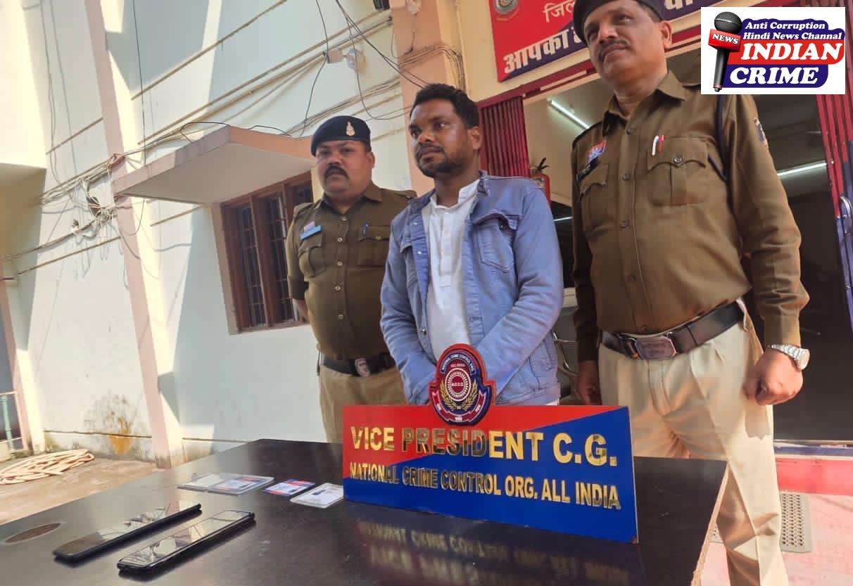 स्वयं को CID अधिकारी बताकर धौंस जमाने वाले आरोपी को धमतरी पुलिस ने किया तत्काल गिरफ्तार फर्जी आईडी कार्ड व “नेशनल क्राइम कंट्रोल” का बोर्ड लगाकर घूम रहा था, स्कार्पियो सहित सामग्री जप्त
