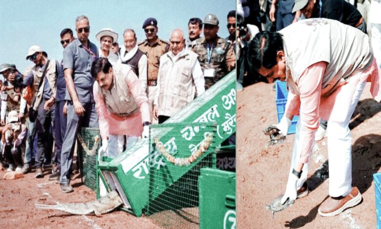 मुख्यमंत्री ने कूनो नदी में रिलीज किये अलग अलग प्रजाति के घड़ियाल और कछुए