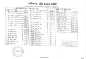 बस्तर जिला कांग्रेस कमेटी”शहर”कार्यकारिणी का हुआ गठन
